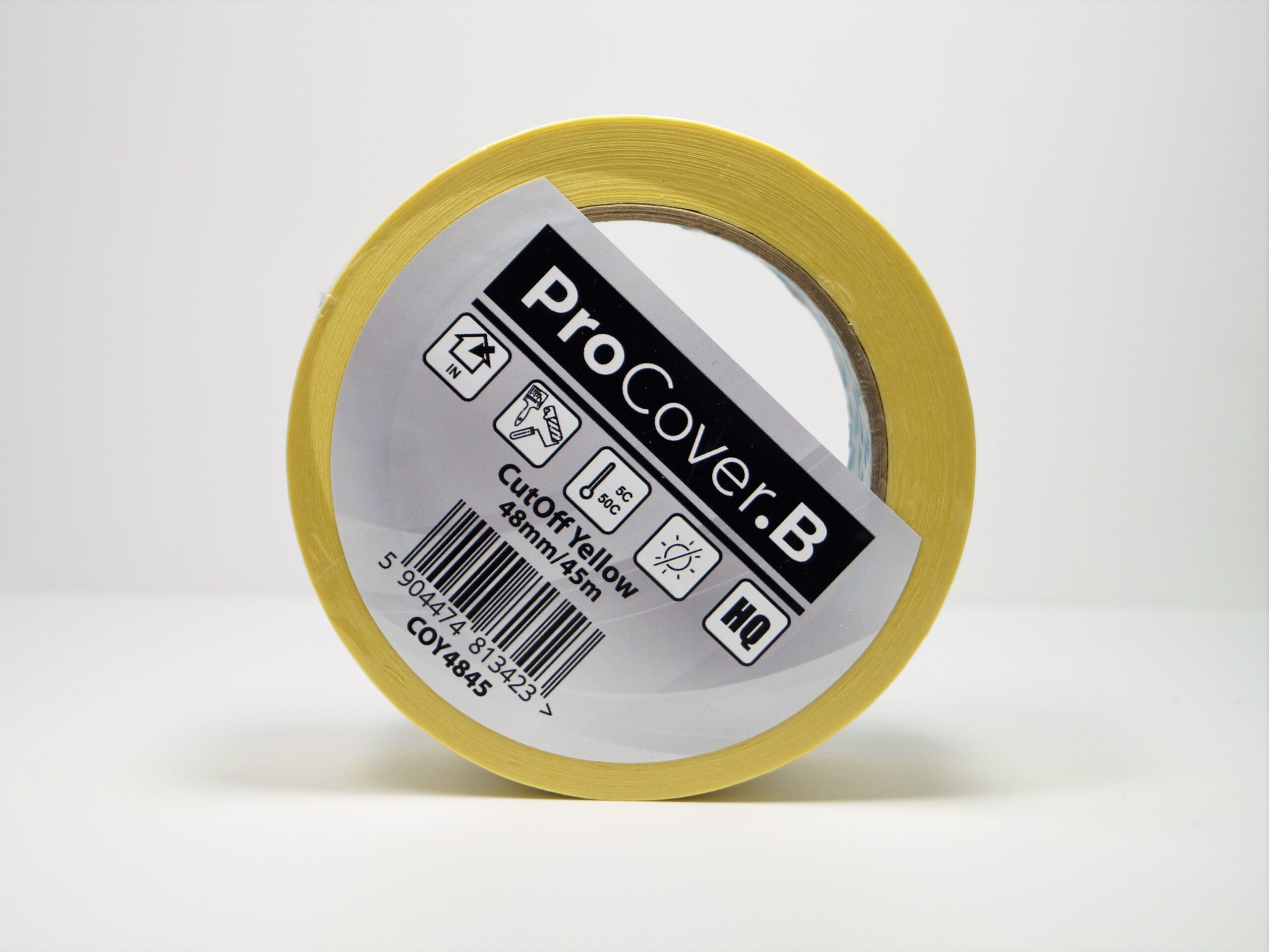 CutOff Yellow to podstawowa żółta malarska przeznaczona maskowania i odcięć podczas malowania ścian farbami akrylowymi, lateksowymi oraz do zabezpieczana innych powierzchni. Używana także do ochrony przed zabrudzeniem/uszkodzeniem powierzchni podczas malowania i innych prac wykończeniowych ( sylikonowanie , fugowanie itp.). Można ja także stosować do przyklejania folii do ścian/okien/futryn. Taśma jest łatwa w aplikacji – można ją ręcznie przerywać. Zastosowany papier zapewnia gwarancję, że nie przerwie się ona podczas aplikacji. Mocny klej kauczukowy (hotmelt) gwarantuje dobrą przyczepność do różnego rodzaju powierzchni gładkich i chropowatych. Podczas odrywania nie ma ryzyka pozostawia kleju. Przydatna jest zarówno podczas prac wykończeniowych jak również podczas malowania różnych przedmiotów, ścian, do sklejania kawałków papieru/folii .